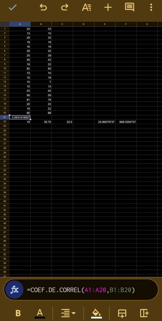 Para conocer el coeficiente de correlacion en un rango determinado de números en una hoja de calculo hay que seguir los siguientes pasos.